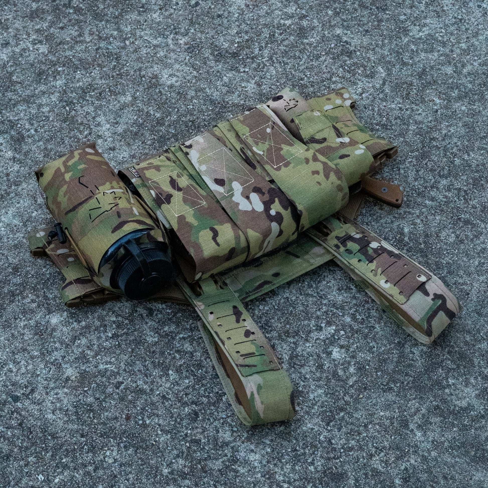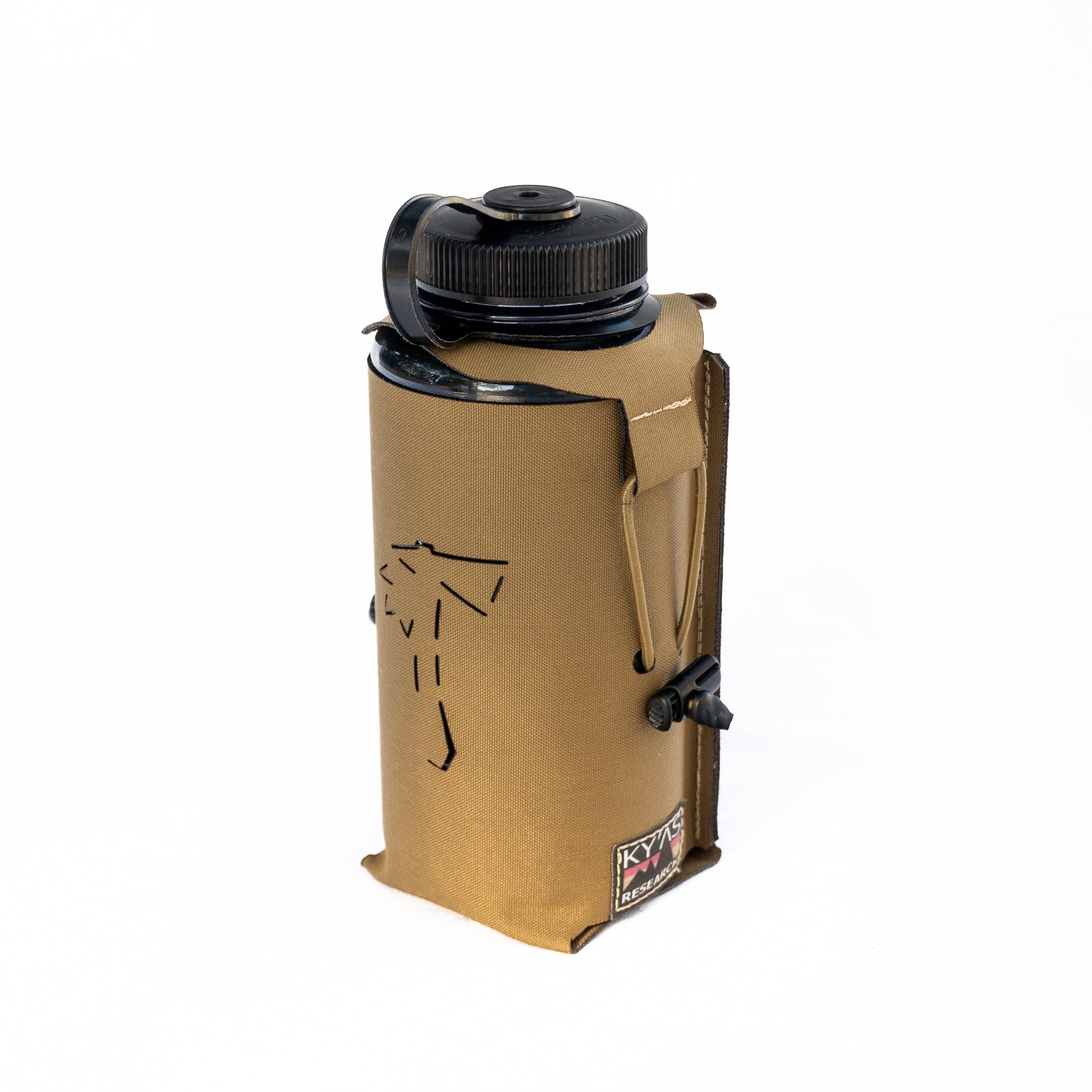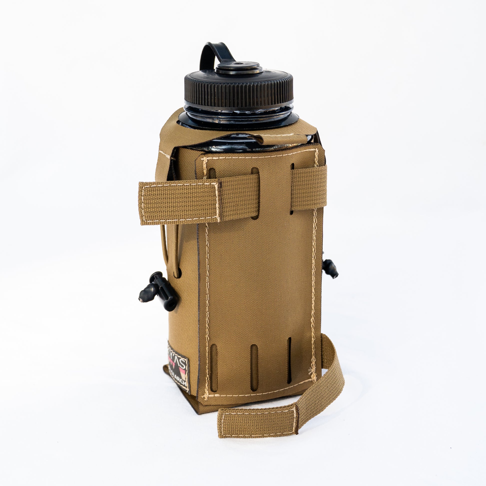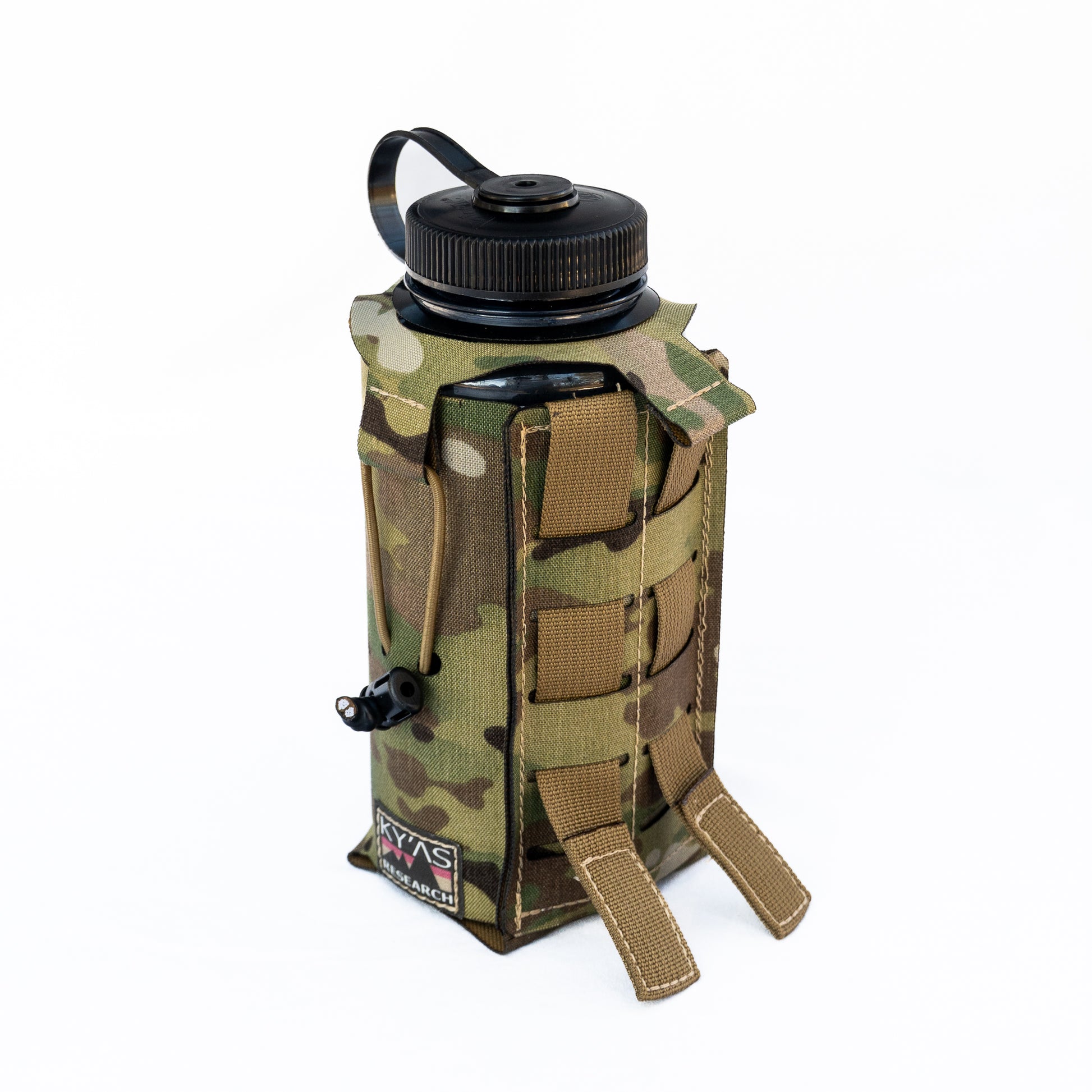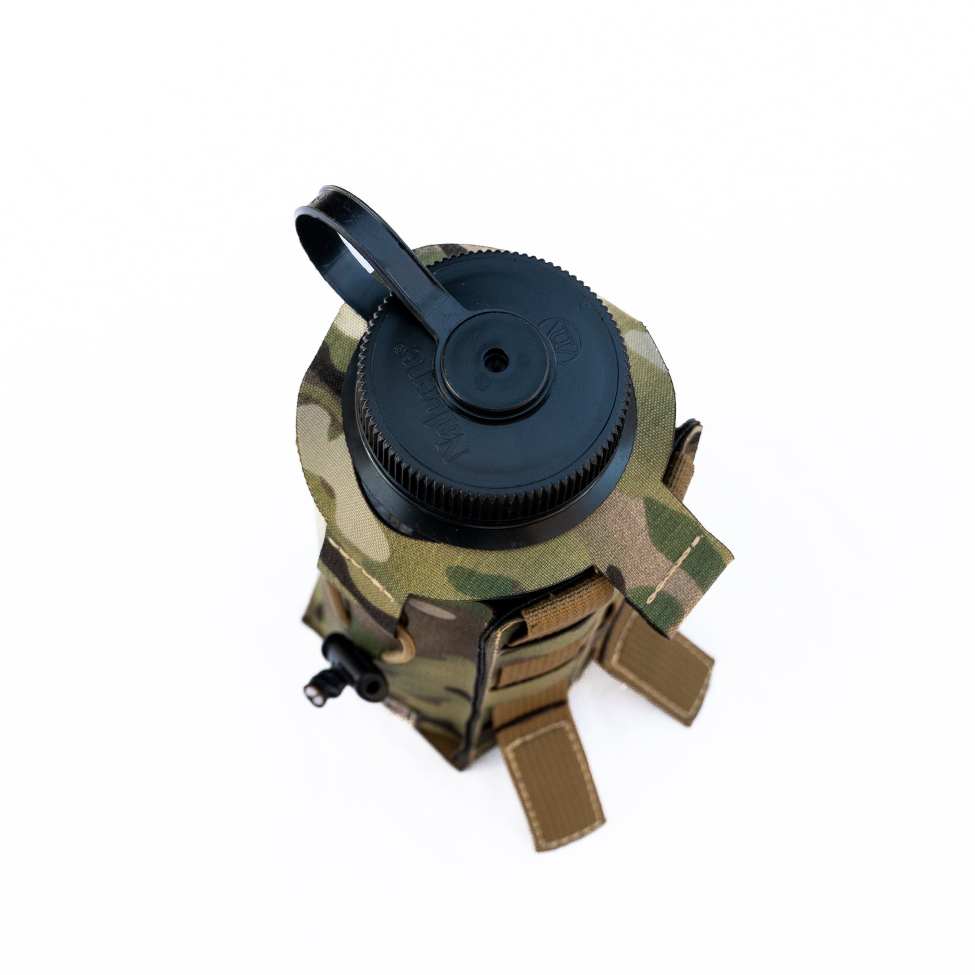 A pouch designed to perfectly fit a Nalgene water bottle with easy one handed accessibility and stowage. It has an adjustable elastic retention lid and is attached to equipment using its MOLLE back panel.