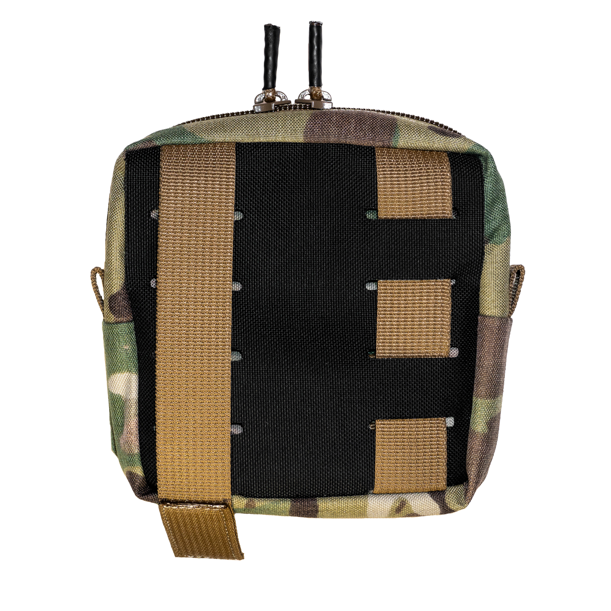 The Saddlebag General Purpose Pouch is a simple yet effective and robust design. For anyone looking to add versatile storage capability to their plate carrier, chest rig, belt, or backpack, this is the solution. Despite its smaller form factor, its main zip compartment is roughly 62 cubic inches, or just over 1 liter. This gives it the ability to hold all kinds of gizmos and gadgets, or a lot of jolly ranchers (like a whole lot). The front flap compartment measures 4.75in deep and 4.5in wide, allowing for the storage of slim profile items such as maps, gauze, band-aids, gum or batteries. This pouch mounts using a laser cut MOLLE panel and takes up 3 columns. Thanks to its integrated straps, there is no need for MALICE clips or anything similar, just weave it and tuck it. Some other notable features include the Interior 4in square loop field, upgraded zippers, and 1.75in belt pass through. The improved zipper pulls always stick up and don't make any noise rattling around like the standard metal ones do. They're also much easier to grip with gloves on or when wet/cold. This pouches fabric is highly water resistant and will do a great job protecting your gear from the elements. Although its structure is rigid by nature allowing for easy access, it can easily be squished down when not in use to avoid snagging or interference with other gear.